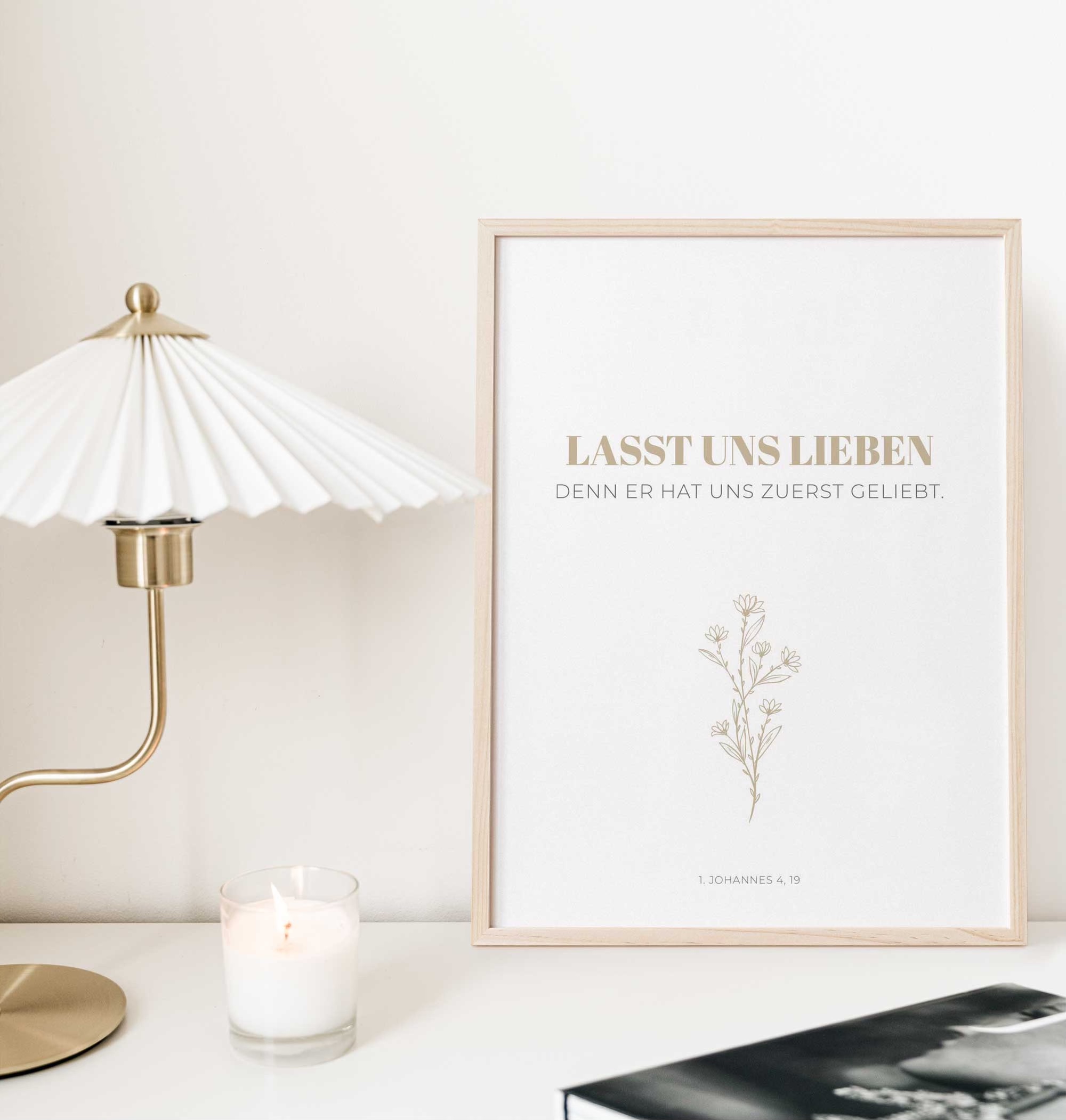Poster mit einemBibelvers aus 1. Johannes 4,19