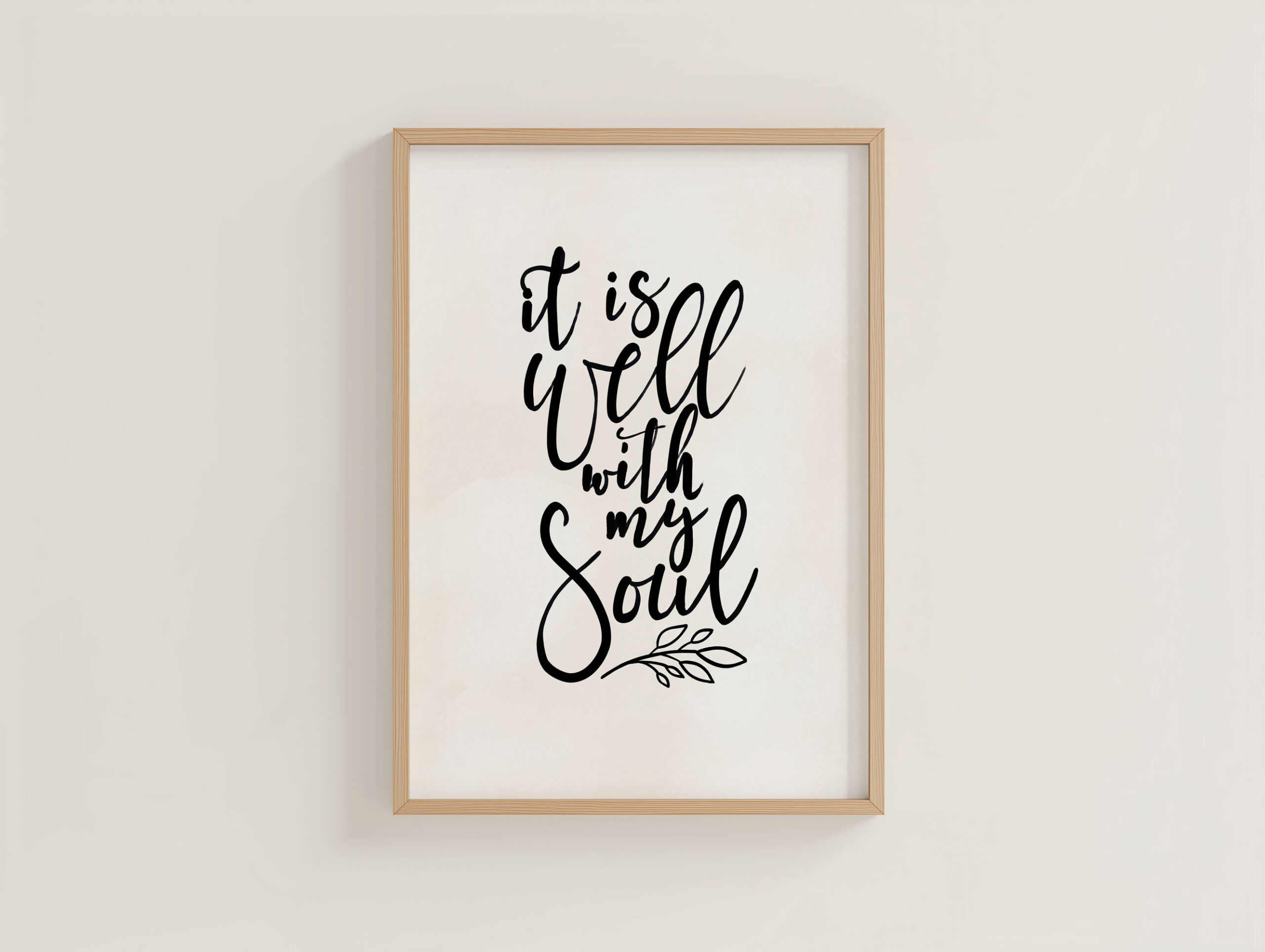 Die Worte „It is well with my Soul“ stammen aus dem gleichnamigen Lied von Horatio G. Spafford, das aus einer tief bewegenden Lebensgeschichte heraus entstanden ist. Trotz großer persönlicher Verluste und tiefem Leid drückt dieser Satz Hoffnung, tiefen Glauben, Frieden und Vertrauen aus. Das stilvolle A3 Poster erinnert daran, dass Gott auch in schweren Zeiten Ruhe schenken kann.